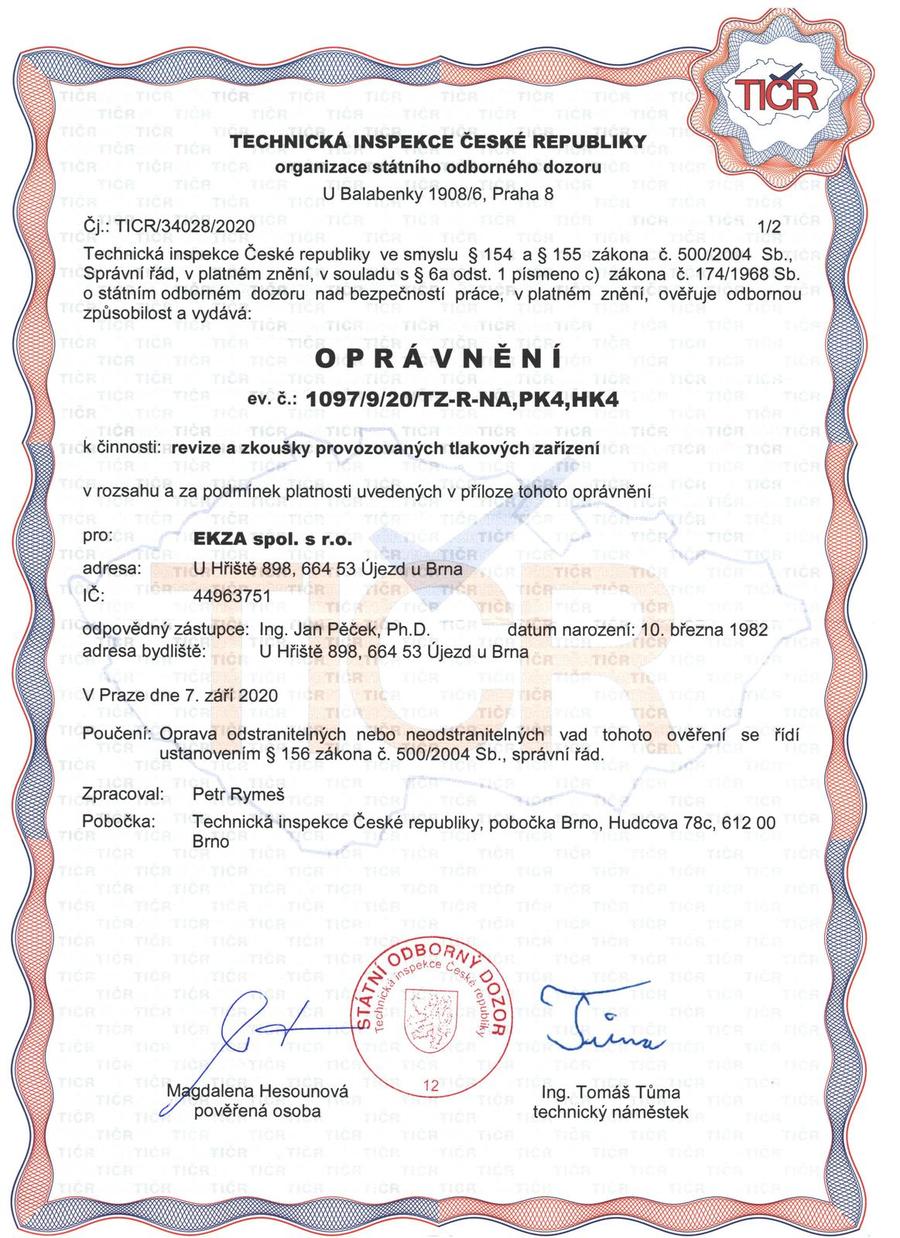 - revize a zkoušky provozovaných tlakových zařízení: NA, HK4