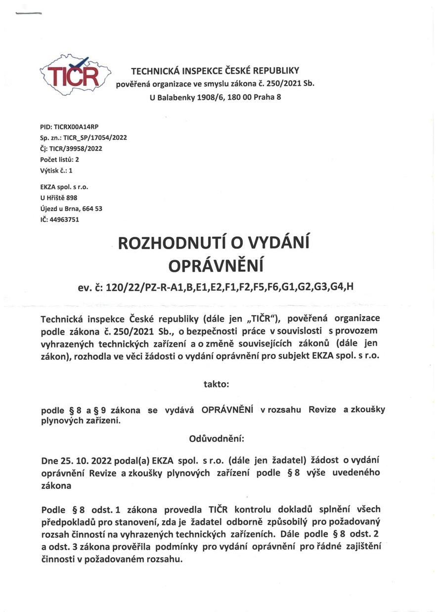 - revize plynových zařízení: A1, B, C2, E1, E2, F1, F2, F5, F6, G1, G2, G3, G4, H