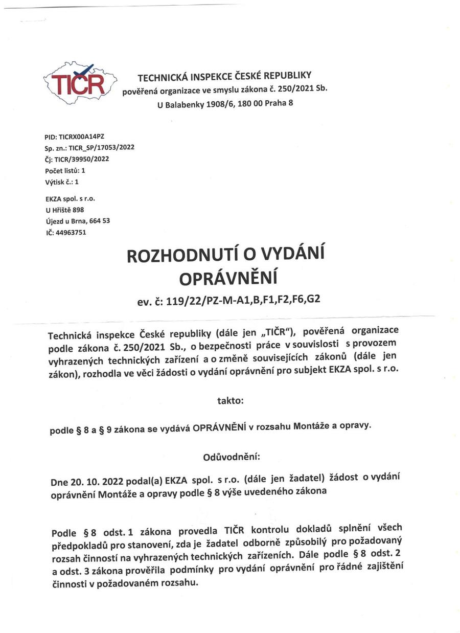 EKZA spol. s r. o., je připravena řešit Vaše požadavky.